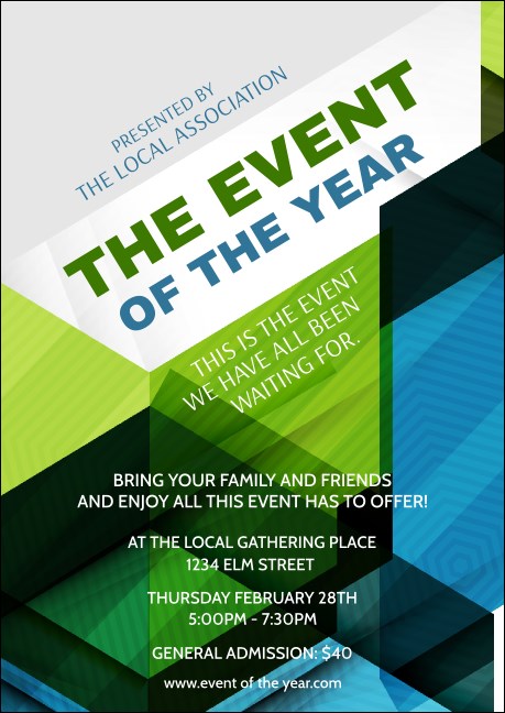 Remind your potential guests when you hand out or send the All Purpose Hex Postcard. The vibrant blues and greens form mesmerizing shapes on this impressive template. Leave these postcards at local businesses or send them to your guests in your database!