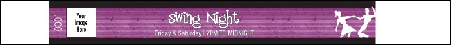 Get rug-cutters through the door and onto the dance floor in record time with 50s Swing Dance Premium Synthetic Wristbands! Singing with cool cat style, this graphic design in purple, black and white lays out your event’s basics in retro white text. Pair with drink tickets, VIP passes and more from its matching event kit!